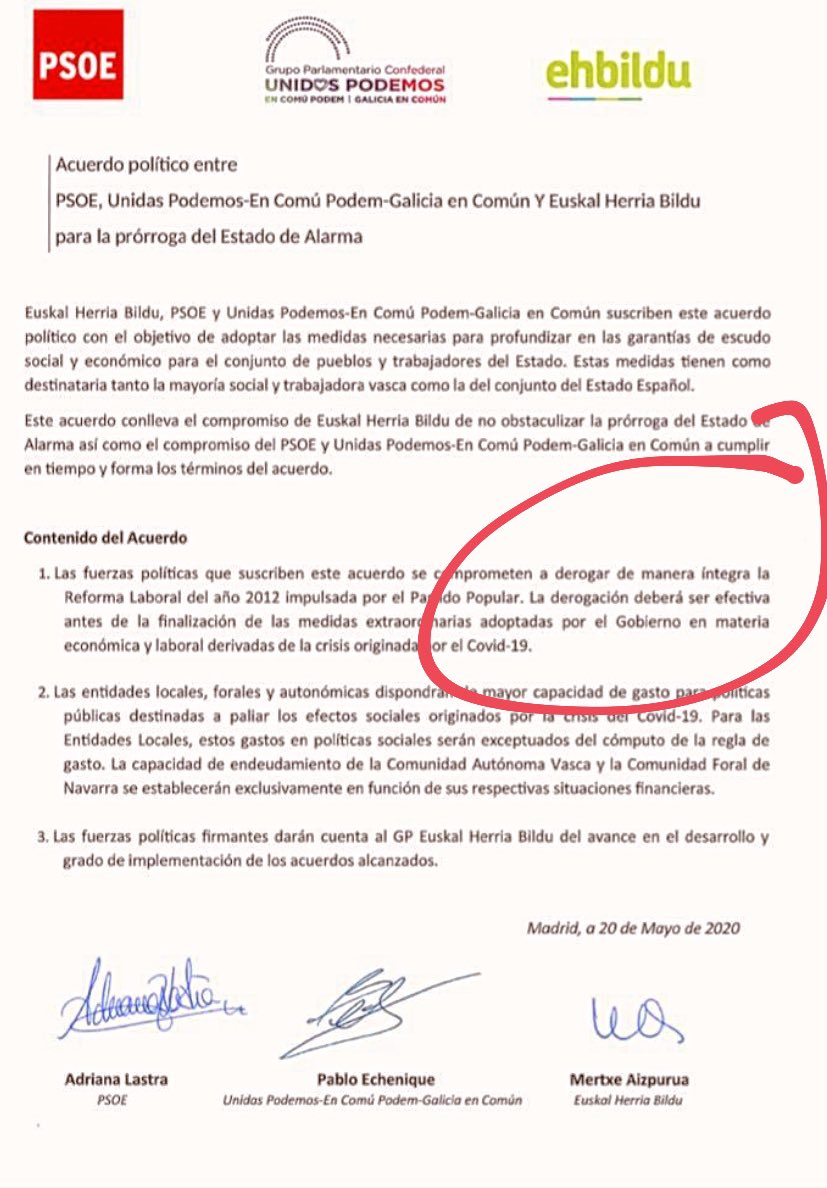 La reforma supondrá tocar aspectos lesivos, pero mantendrá lo esencial de aquello por lo que se fue a una huelga general en marzo de 2012, un mes después de su aprobación. Recordemos que en mayo de 2020, el documento que acreditaba la derogación íntegra de la reforma fue firmado por PSOE, UP y Bildu.